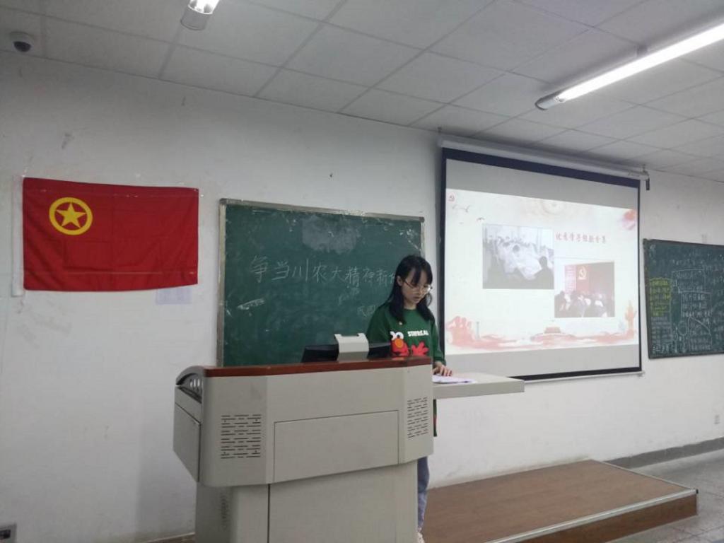 活动尾声,由主持人郭恒源带领同学们朗诵《我自豪,我是川农人》和齐唱校歌《相聚在桂花飘香的时节》。谈及此次团日活动意义,主持人郭恒源说:“通过这次团日活动,我希望大家都能更清晰地认知公司精神丰富的内涵,争做新时代川农学子,向优秀学子看齐,以实际行动传承公司精神,为班级、学校乃至祖国社会的建设出力。”